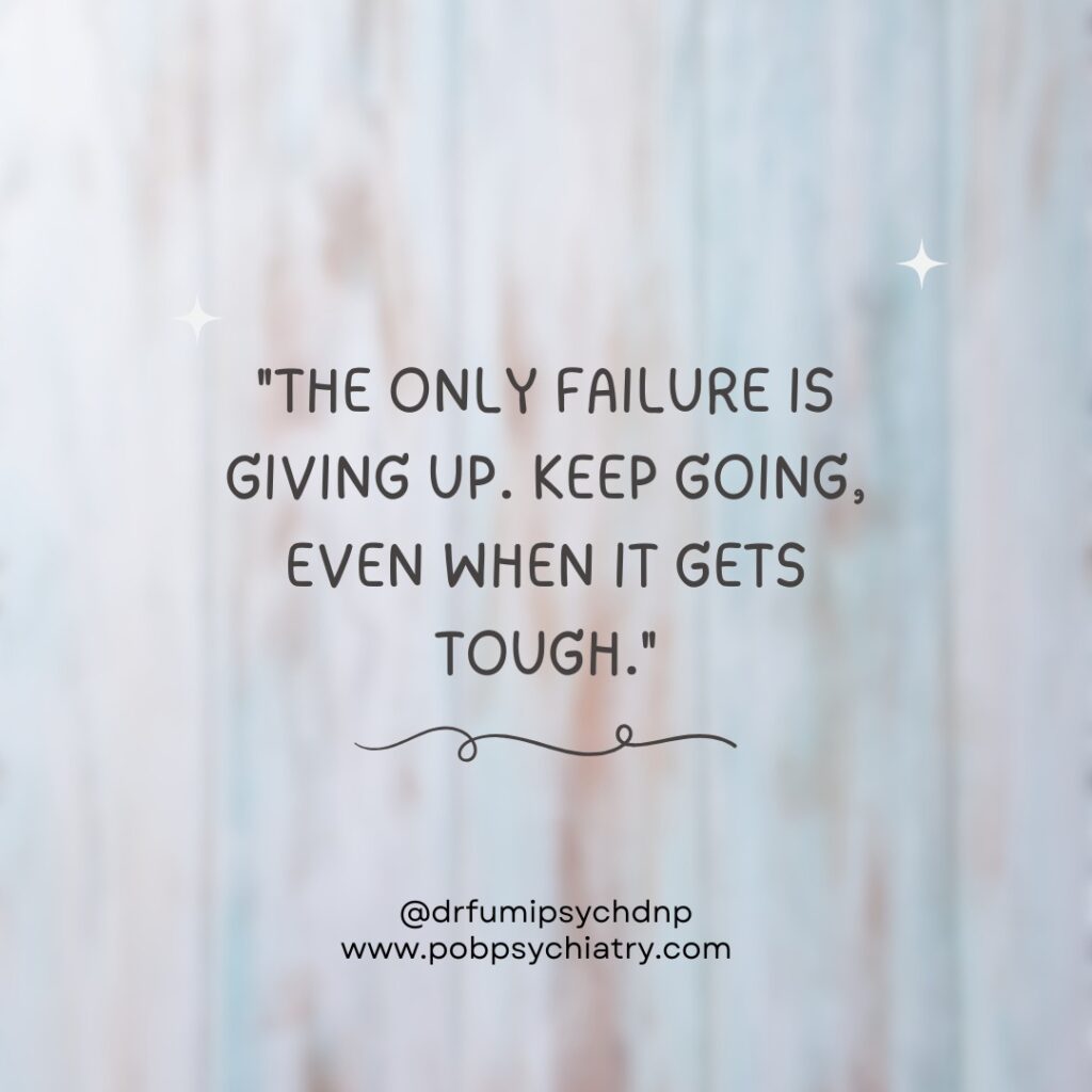 “The only failure is giving up. Keep going, even when it gets tough.”