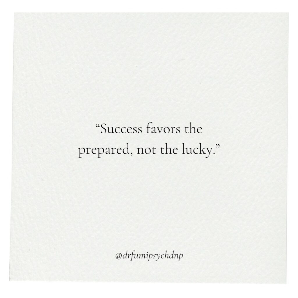 Luck might give you an opportunity, but preparation ensures you’re ready when it arrives. Success isn’t a matter of chance—it’s the result of planning, practice, and consistent effort. Every skill you sharpen, every habit you build, and every step you take prepares you for the doors life will eventually open. Don’t wait for luck. Create your own fortune by being ready when opportunity knocks.